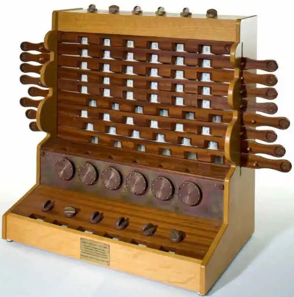 - Устройство выполняло сложение и вычитание с использованием зубчатых колёс.